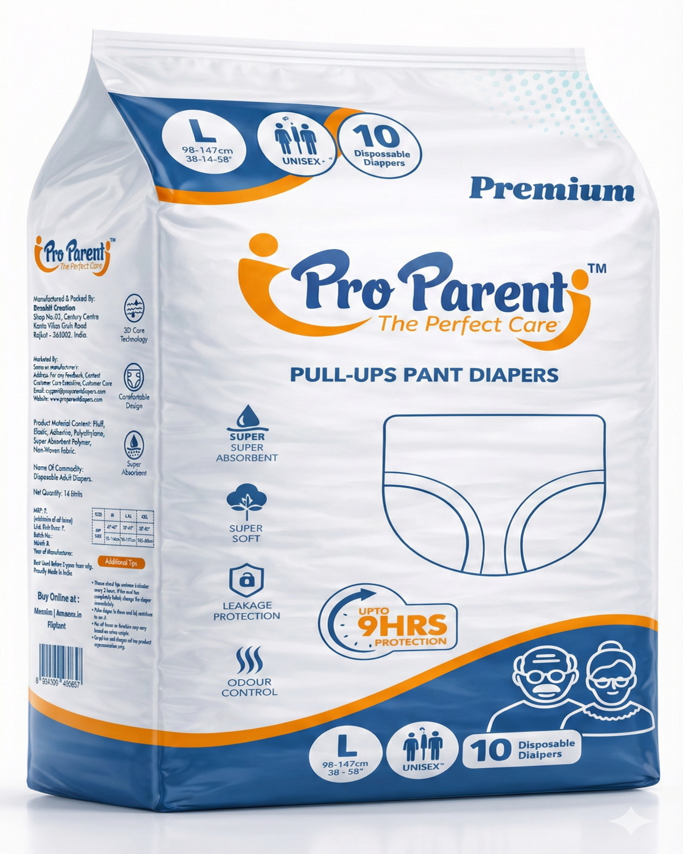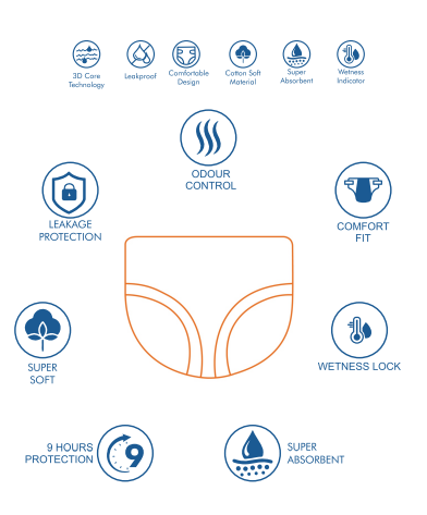 Super absorbent adult diapers can hold upto 1.5 litres of liquid without causing any wetness, rashes or irritation. Proparent Adult Diapers are extra absorbent diapers for adults that can soak upto 9 hours of leakage and last all- night long! Proparent diapers are built to ensure maximum absorbency and uncompromised comfort.