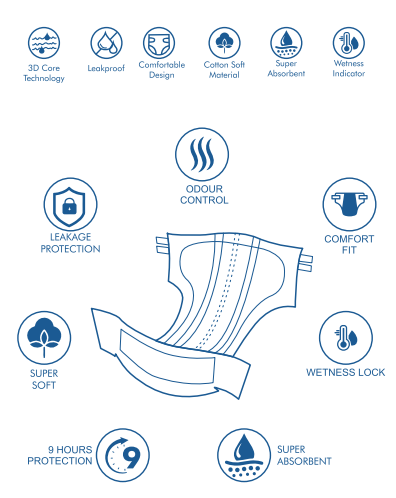 Proparent Adult Diapers absorb 4-5 urinations without any leaks.